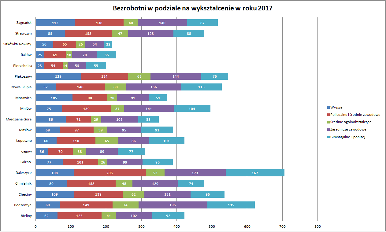 Statystyki - Stan bezrobocia w gminach 2017